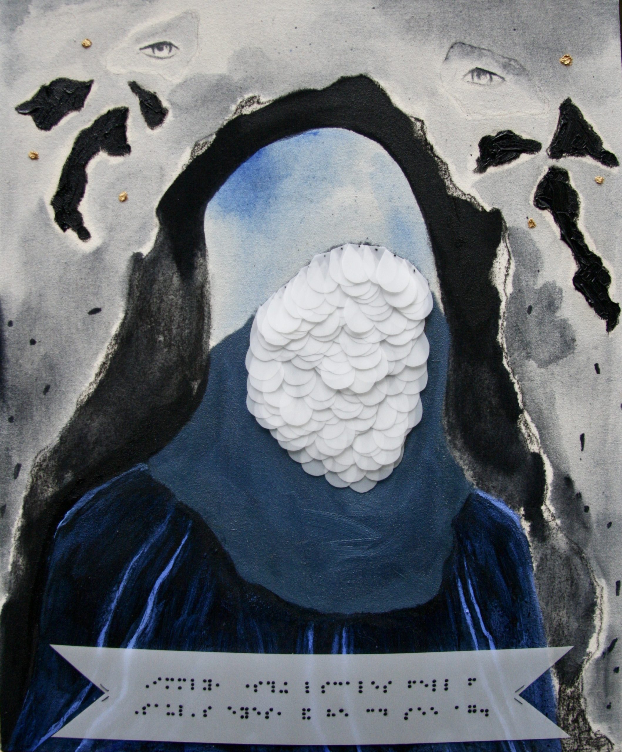 Charcoal, gouache, thread, and Dura-Lar Film, 11" x 14", 2018