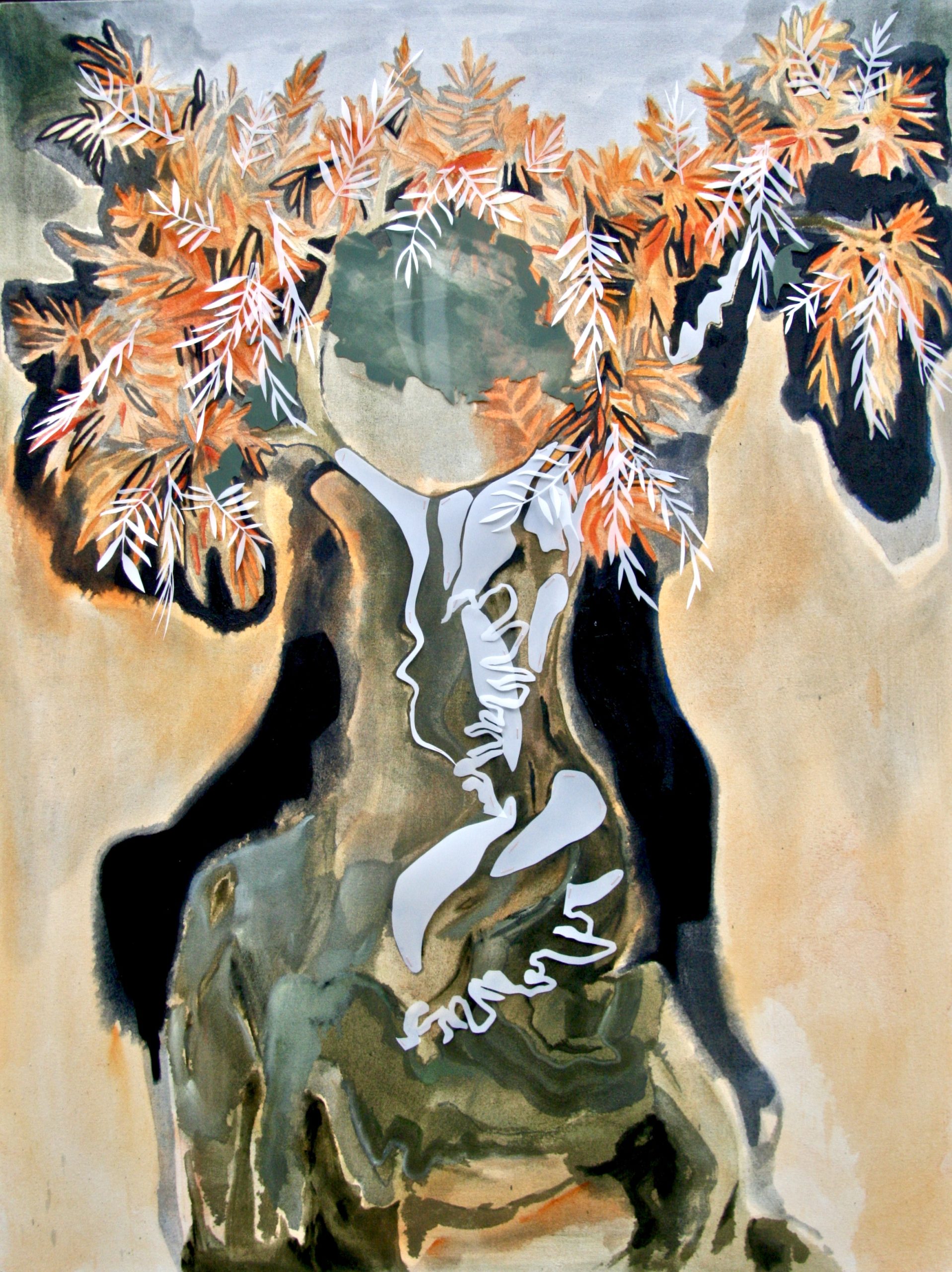 Oil, charcoal, mylar, gouache, and thread on canvas, 18" x 22", 2018