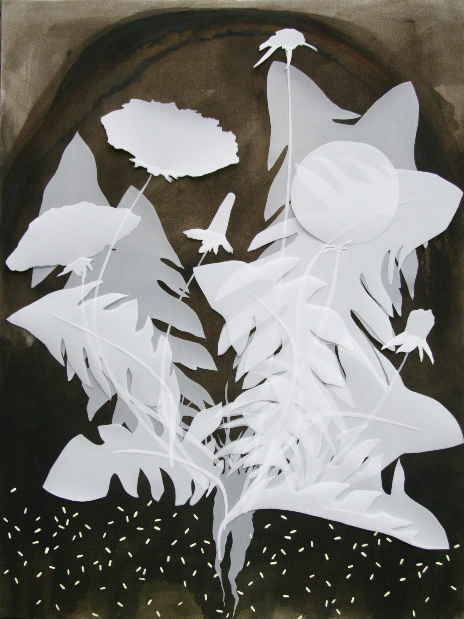 Watercolour, graphite, synthetic polymer medium, and thread on Dura-Lar film, 11" x 14", 2018