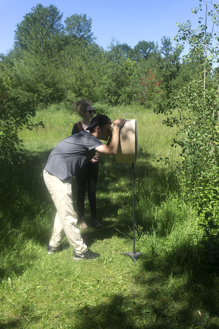 On the occasion of Canada’s 150th anniversary, Landmarks 2017 was a national project including undergraduate and graduate students from colleges and universities across Canada. The students were asked to respond to the history and meaning of this country, which was to be displayed in a site specific location. I used a CNC router to create the body of coin-operated binoculars, which played a stereoscopic stop motion animation of a contemporary parable depicting the treatment of sacred spaces. Along with this piece, I performed the story in John 9:1-12 in which a man’s sight is restored when mud is applied to his eyes by Jesus. These videos can be seen by scanning the QR codes.