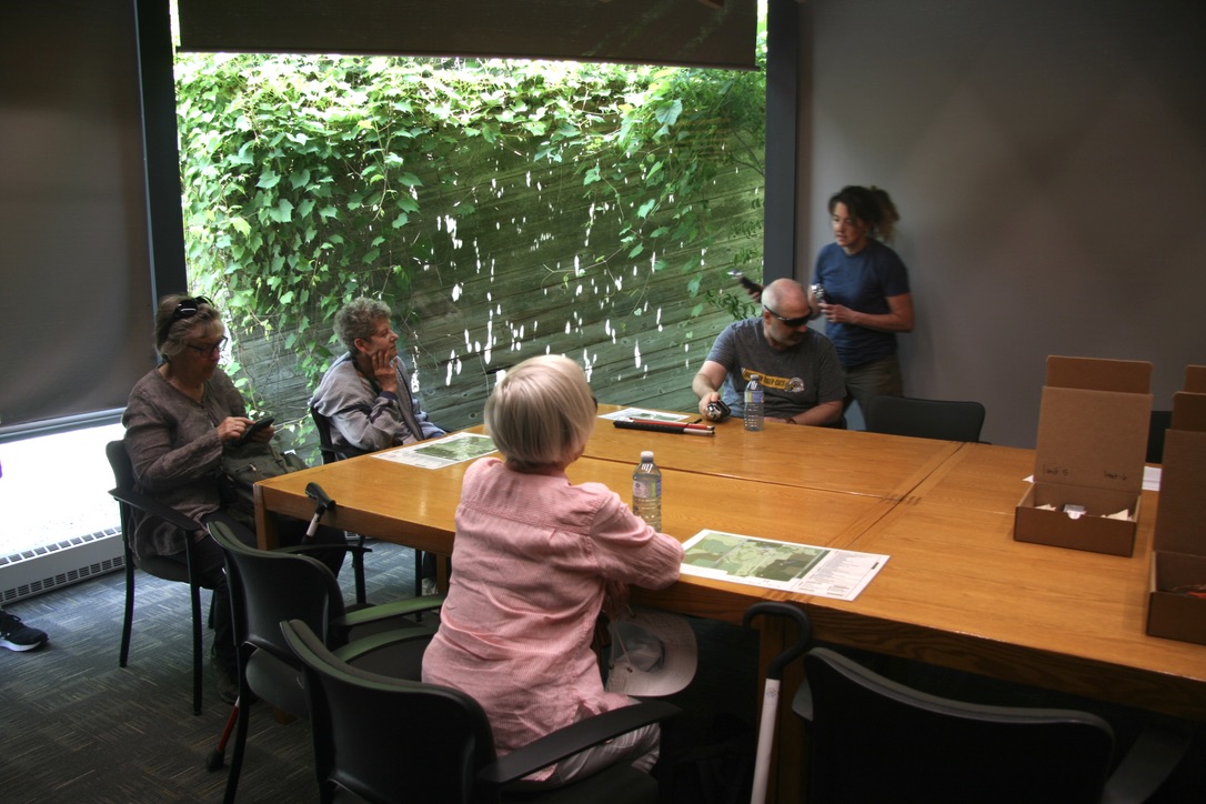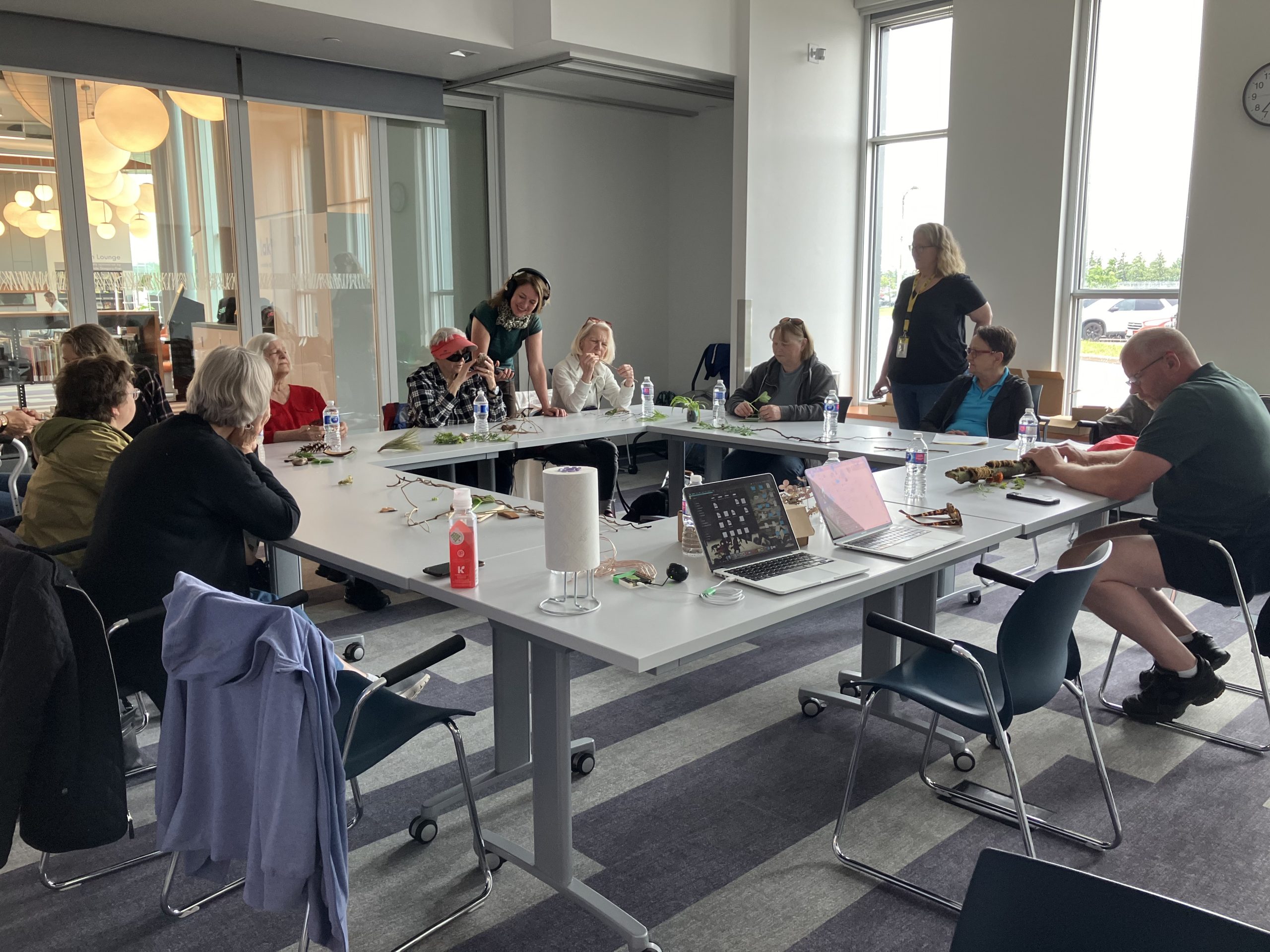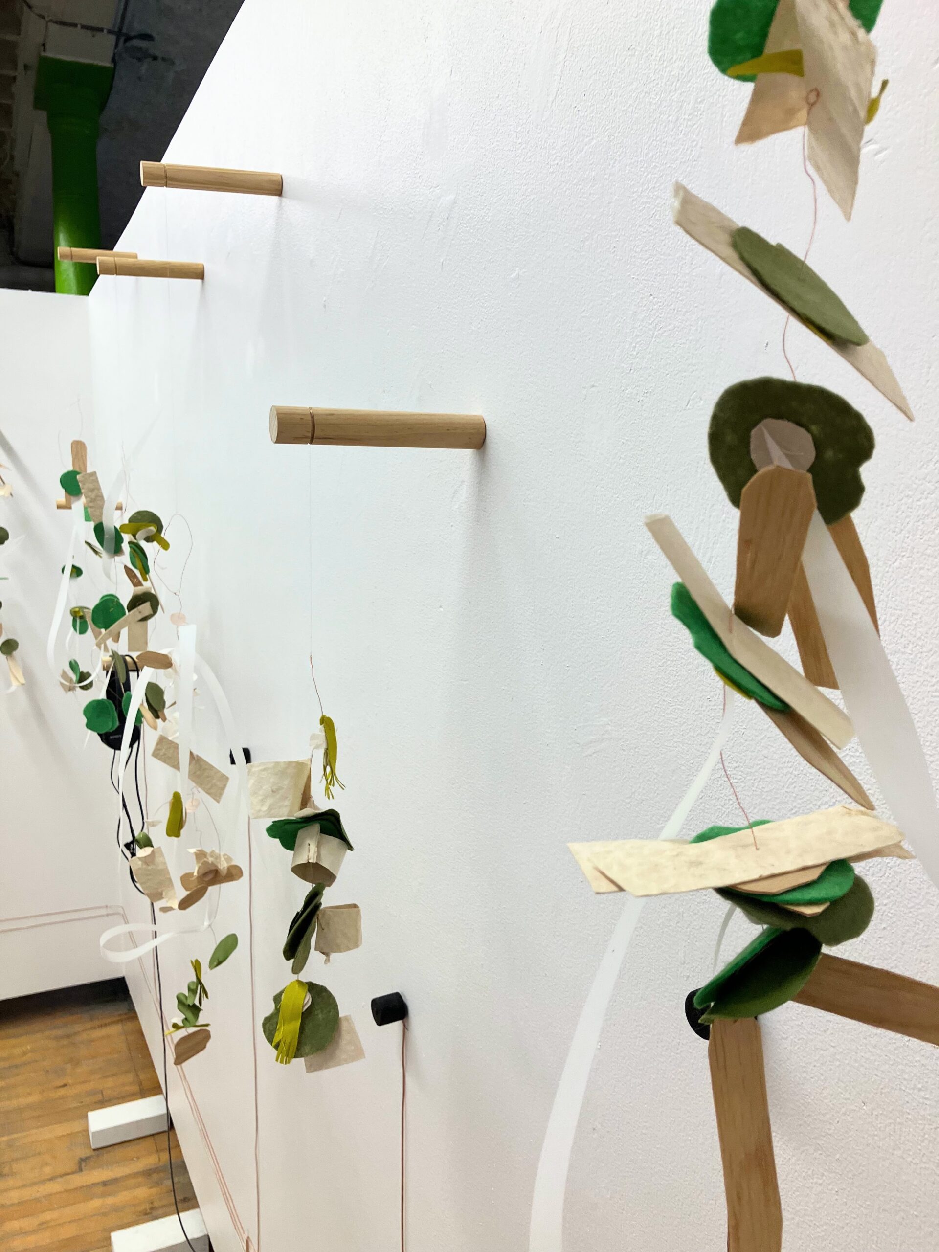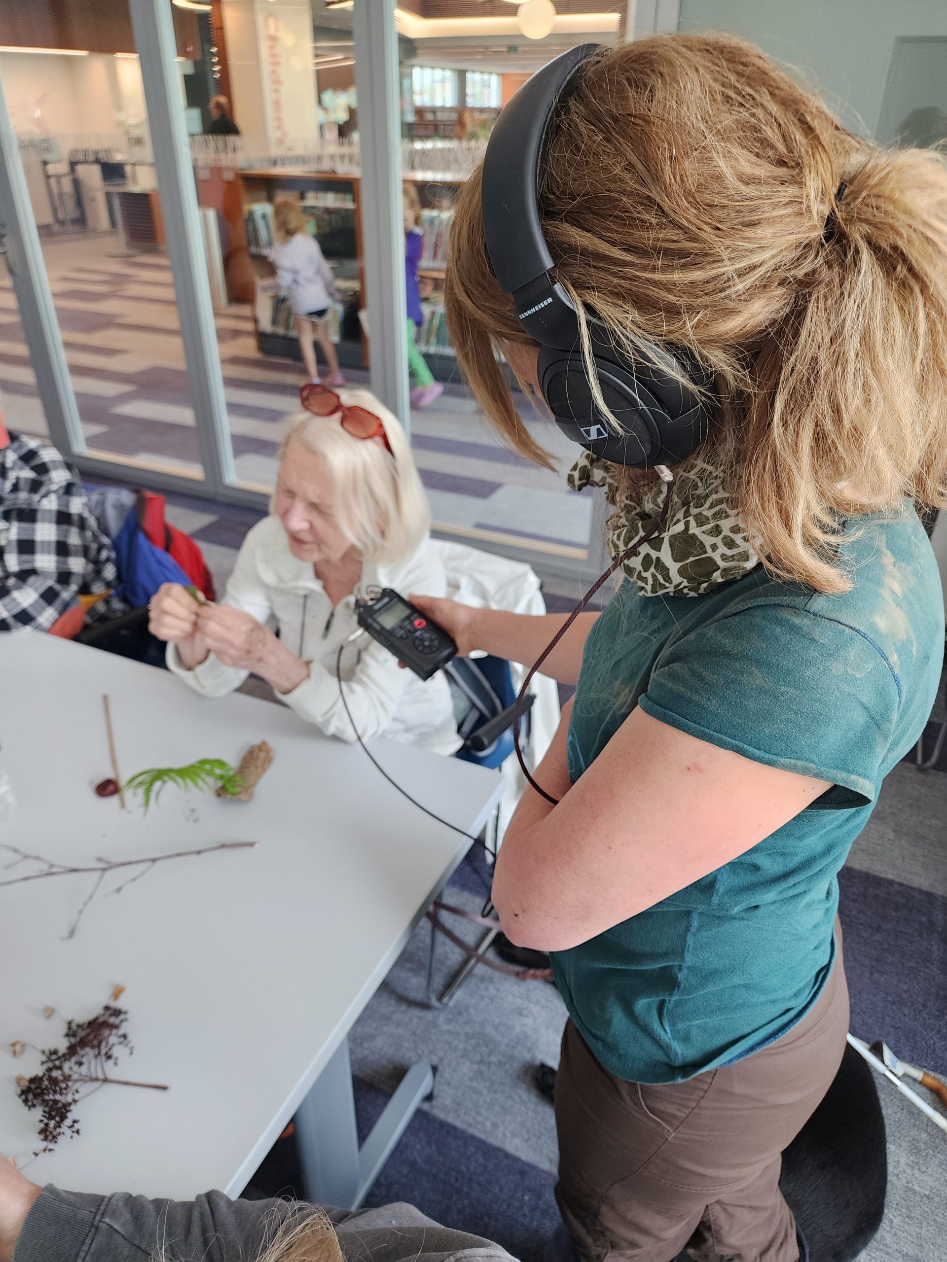 A second workshop was held in Waterloo, Ontario on Saturday, May 25th, 2024 at the Walter Bean Grand River Trail and Waterloo Public Library Eastside Branch. Due to rain, participants stayed indoors and were given materials from nature to touch, smell, hear, and recall memories these senses have triggered. Abstract mobile sculptures were created in response to these feelings. An exhibition to showcase these creations and recordings will be held at Button Factory Arts from June 19th to July 20th, 2024.