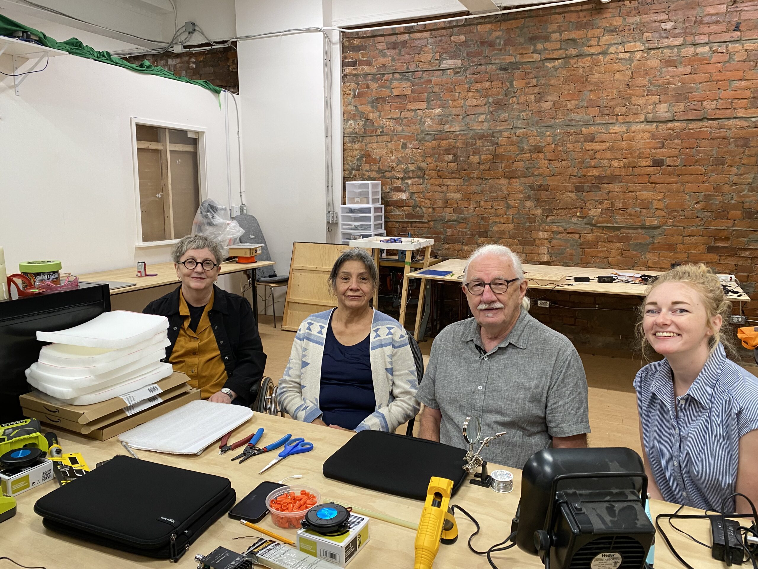 Haptic Horizons was a three-week long residency in Fall 2024 with Centre[3] and VibraFusion Lab in their studio located in Hamilton, Ontario. Artists had the opportunity to learn about VibraFusion’s partnerships with other artists using their haptic technologies as a medium for accessibility and interaction, and to brainstorm their own partnership project with such technology. Pure Data workshops of programming various signals, projections, frequencies, synthesizers, and vibrations were taught each week to inspire the possibilities of the artists’ projects. The final day concluded with an informal presentation with the artists, Marsha, a deaf-identifying Indigenous activist, and Debbie, Marsha’s ASL interpreter. My project is in its early stages, but may appear in a future exhibition pending funding.